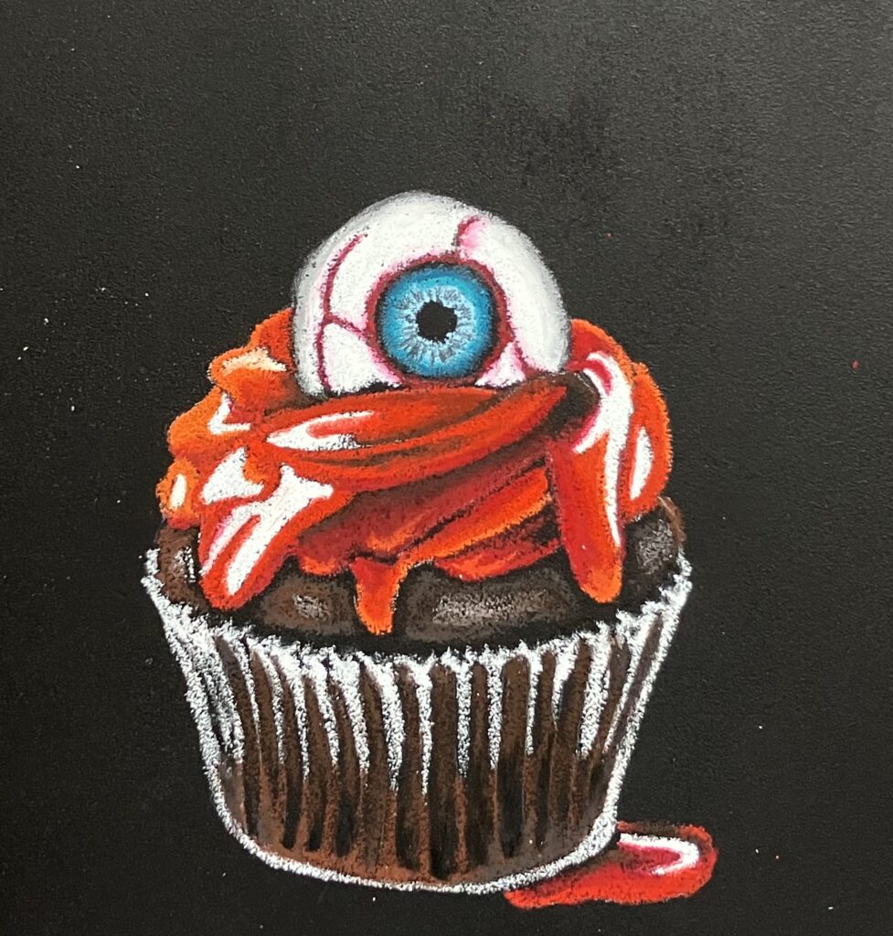 ハロウィン関係なしで描いたスイーツも、どこかホラーな雰囲気。